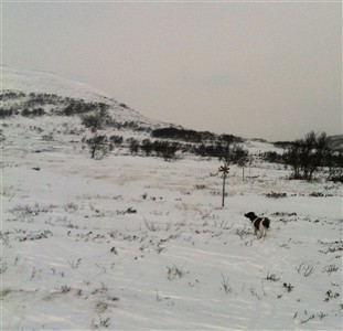 Så här års får Ilse springa fritt när vi åker skidor på fjället, och som hon springer, trots den ibland meterdjupa lössnön som fyller ut svackor och hål. Det blir till att hoppa och pulsa sig fram, man vet aldrig riktigt när man kommer att sjunka ner igen och det tar på krafterna, både för matte och hund.