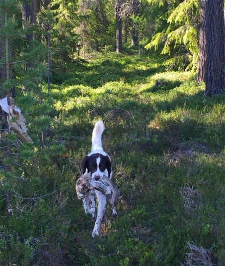 Liksom att göra ett minisläpspår med kanin som var tio meter långt. Inga problem alls för henne att hämta och sedan lämna till en överlycklig matte som väl inte hade trott att det skulle gå så lätt!