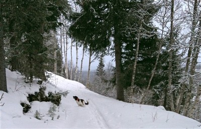 På ridspåret är snön tack och lov packad och hård, men i skogen är den nu så djup att till och med Ilse har svårt att ta sig fram. Några försök blev det dock som snart avbröts när hon upptäckte hur hopplöst djupt det var.