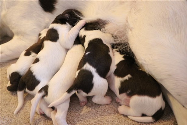 Men tills dess låter vi dem vara ifred så mycket som möjligt i valplådan tillsammans med sin mor. Vi får sitta bredvid och titta och njuta. Snart blir det full rulle. Tiden går så rasande fort.