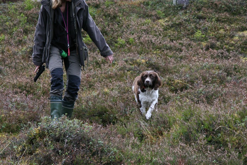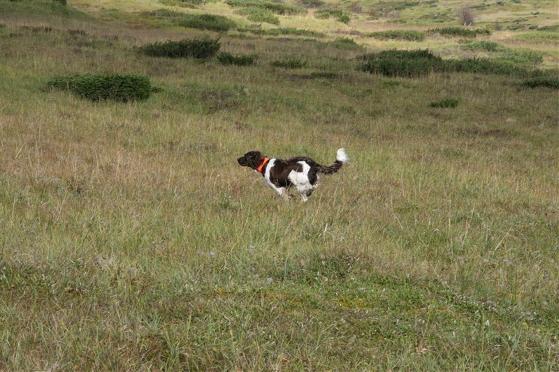Släpspår med vildkanin. Ilse hämtar och kommer som ett skott. Tidigare hade vi bara haft tillgång till köttkaniner och varje viltslag måste övas med, även olika slags kanin. Till skilllnad från en del andra hundar är Ilse inte alls skeptisk vid kontakt med nytt vilt, snarare blir hon lite för intresserad och vill undersöka bytet själv, vilket absolut inte är okej. Som tur var fick vi tag i vildkanin när vi passerade Uppsala och nu fungerar även det.